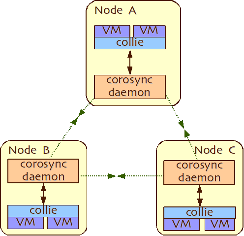 Sheepdogは1ノード(collieと呼ばれる)とパッチを適用したQEMU/KVMから構成されます.