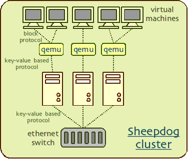 Sheepdogは,Sheepdogクライアント(qemuブロックドライバ)に簡単なKeyValueInterface?を提供するストレージシステムです.