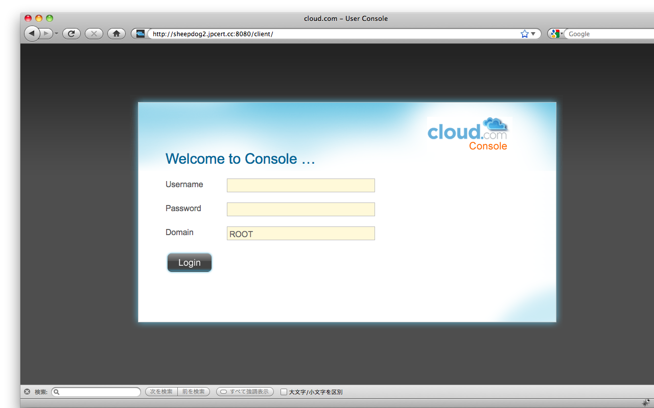 ブラウザでhttp://<management-server-ip-address>:8080/clientにアクセスするとログイン画面が表示されます.